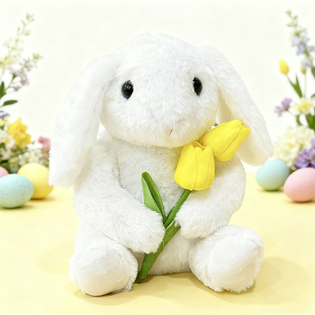 チューリップを運ぶイースターウサギぬいぐるみ青い服ウサギぬいぐるみ人形キッズギフトMei Mei the Bunnyぬいぐるみ
